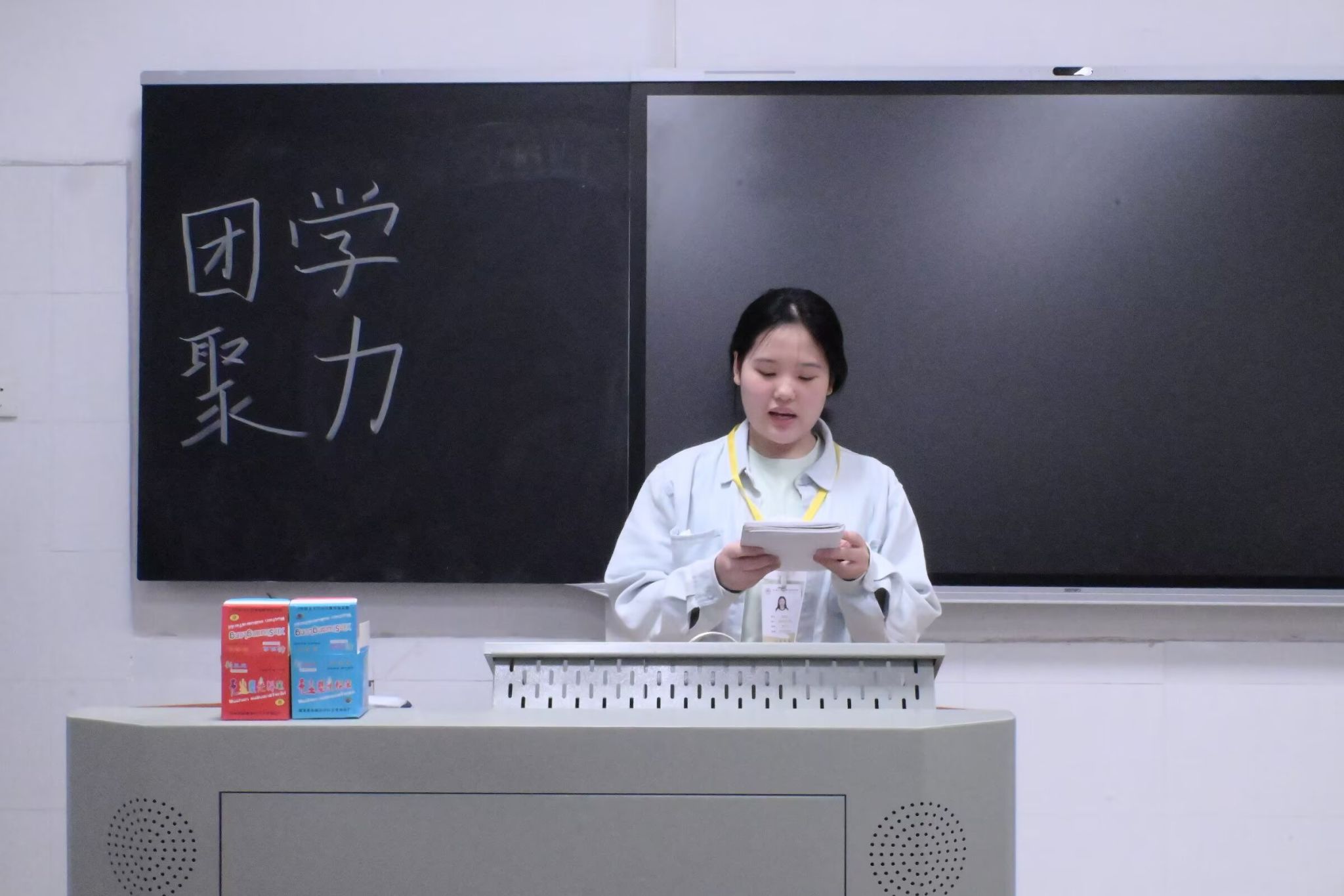 学生会主席团成员袁婷作会议总结。她对团学两会全体成员提出三点要求,一是要重视并致力于提升个人的能力以及增强团队的凝聚力;二是在日常的工作中要及时反馈存在的问题和不足,并积极寻求改进的方法;三是在追求个人工作效率提升的同时要加强部门间的团队合作,实现个人与团队共同进步。