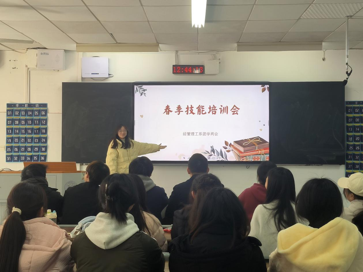 (通讯员 周文静 刘媛媛)3月18日中午,我院经管系、理工系团学两会在树达楼107教室召开春季技能培训会。会议由学生会办公室成员汤晨依主持。