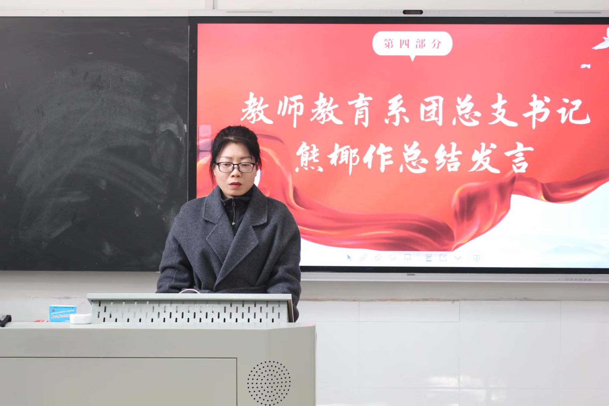(通讯员 彭璟怡 洪鹏志 胡超凡)12月16日中午,我院教师教育系团学两会在达善楼112教室召开学期总结大会。教师教育系团总支书记熊椰出席会议。会议由学生会健康服务部成员肖雨妍主持。