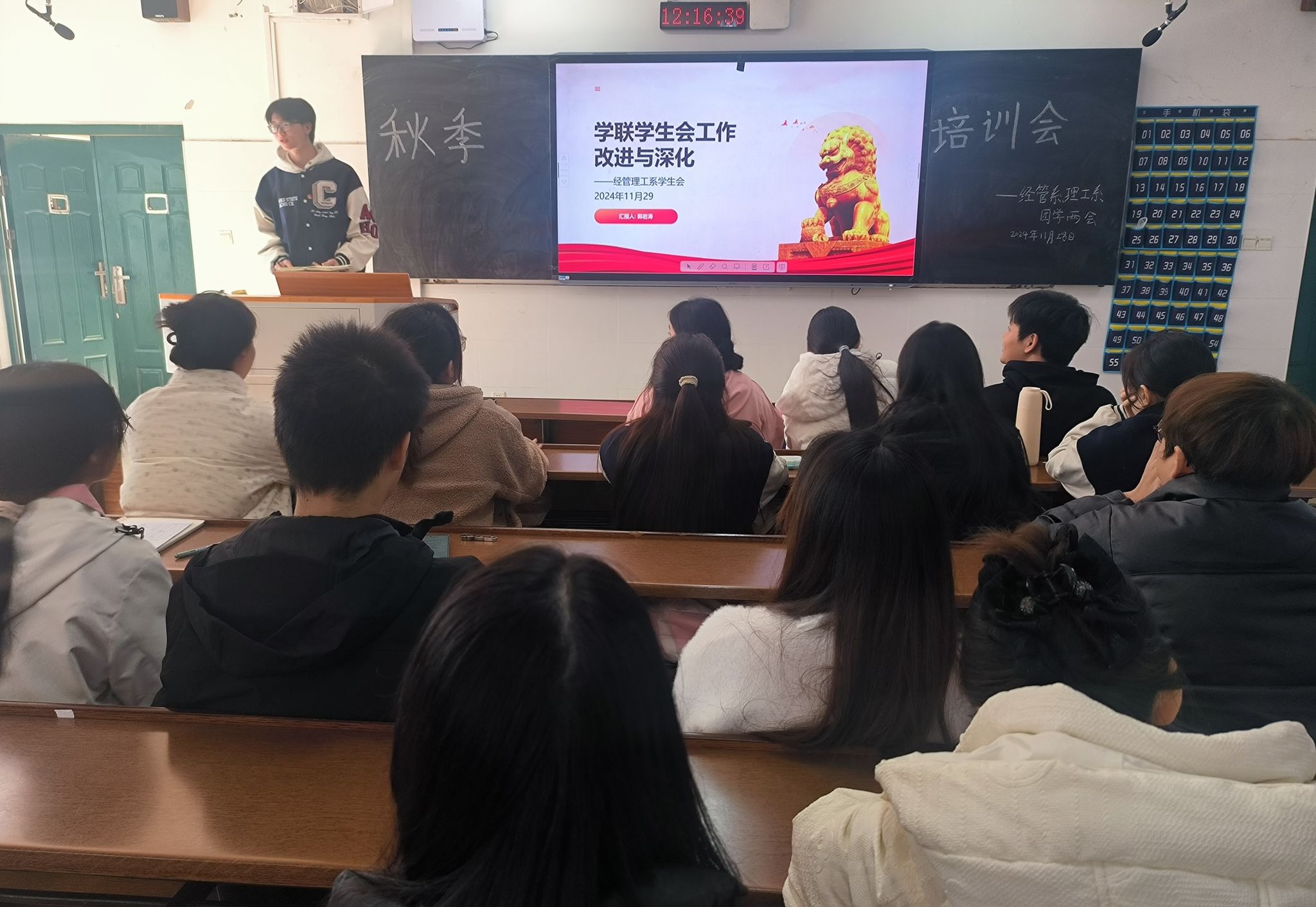 (通讯员 周文静 汤晨依 叶俊杰)11月29日中午,我院经管系、理工系团学两会在树达楼107教室召开秋季工作人员技能培训会。会议由经管系、理工系团总支学生会办公室成员汤晨依主持。
