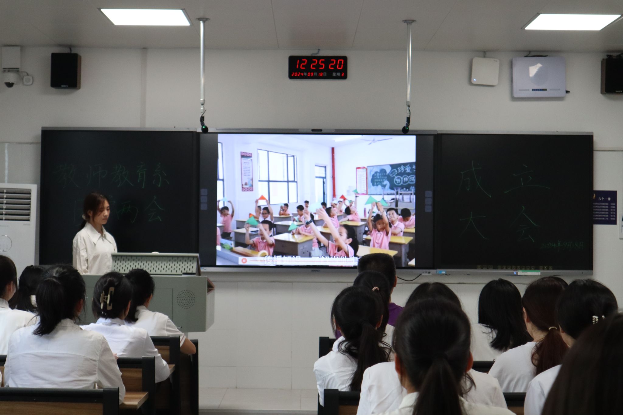 (通讯员 彭璟怡 洪鹏志 夏章稳)9月18日中午,我院教师教育系团学两会在第一教学楼207教室召开教师教育系第八届团学两会成立大会。教师教育系系主任王齐,教师教育系团总支书记熊椰出席大会。