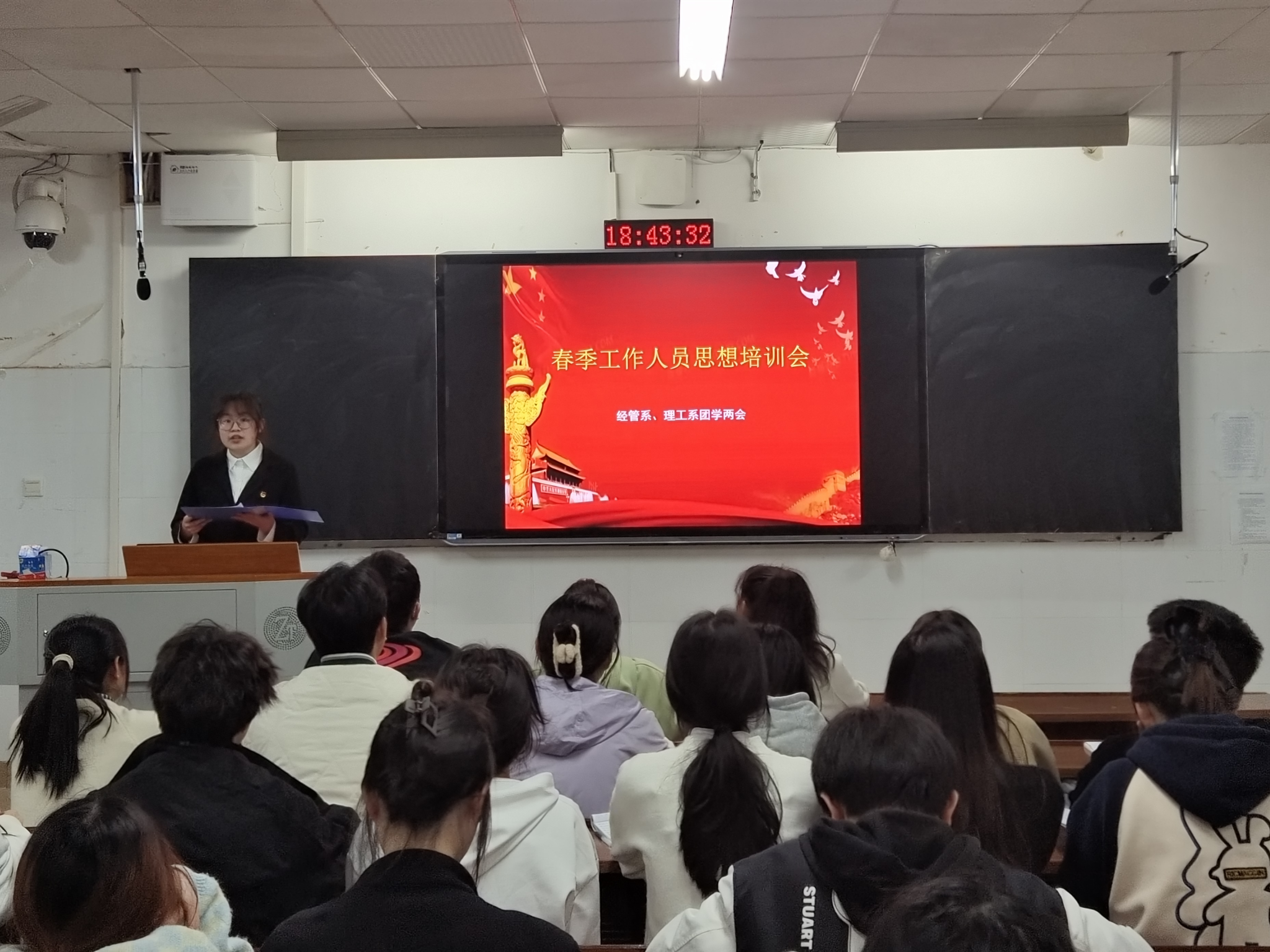 (记者 肖粤峰 肖峰 刘艺杰)3月27日晚上,我院经管系、理工系团学两会在树达楼106教室召开春季工作人员思想培训会。会议由学生会办公室成员周文静主持。