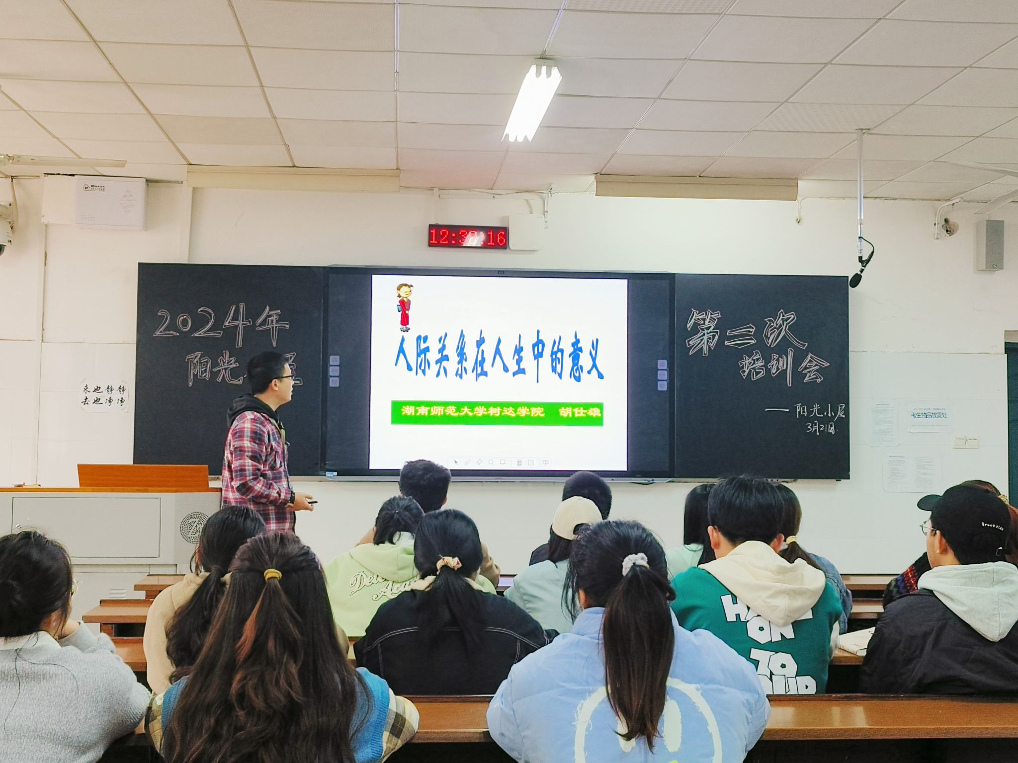 胡仕雄就如何处理好人际关系问题展开阐述并回答了同学们提出的问题。他表示,人际交往是人生中不可缺少的部分,建立良好的人际关系能够促进个人的身心健康,提高生活幸福感和满意度。他强调,人际交往需要遵循平等、尊重、宽容、真诚、互助互惠五个原则,在日常交往中,要用真诚去播种,用热情去浇灌,用原则去培养,用谅解去呵护。希望大家在人际交往中能以“己所不欲,勿施于人”为标尺,与朋友建立良好关系。面对他人不合理的请求,要学会拒绝,心中有尺,方能行事有度。