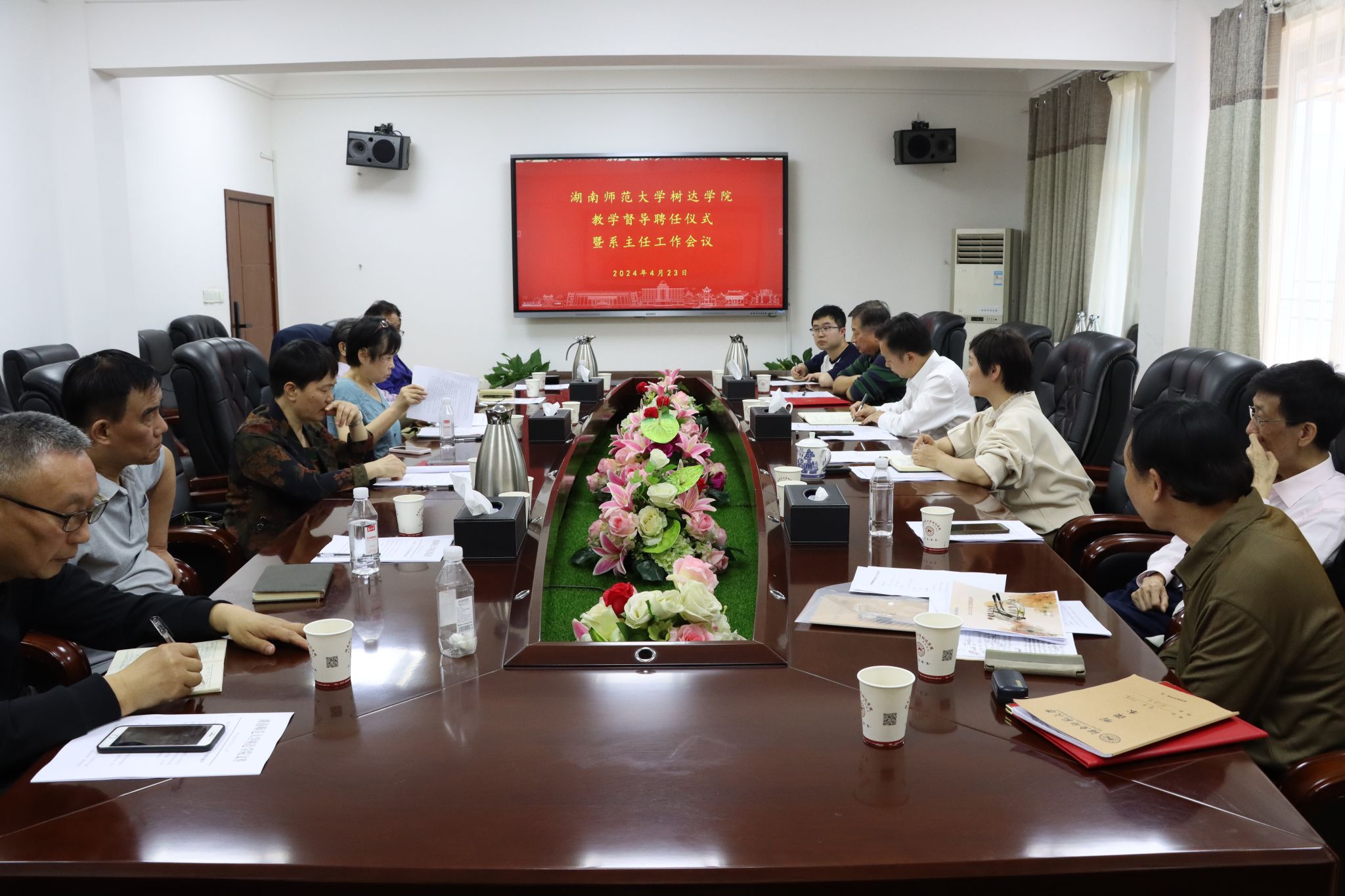(记者 李秋艳 曹钐瑶 汤心仪)4月23日下午,我院在办公楼302会议室召开教学督导聘任仪式暨系主任工作会议。院长向坚持出席会议。副院长梁蓓蓓主持会议。