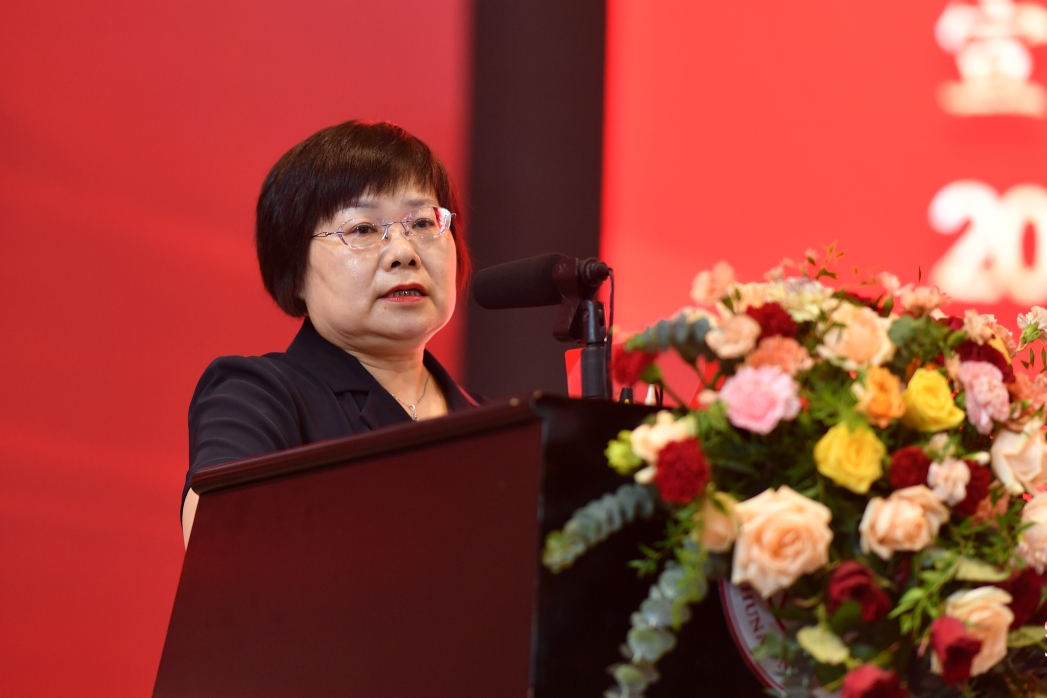 校友代表何玲回顾了自己创业的心路历程、分享了工作成就,并希望毕业生们不忘以“仁爱精勤”的校训要求自己,以实际行动回报母校的培育之恩。