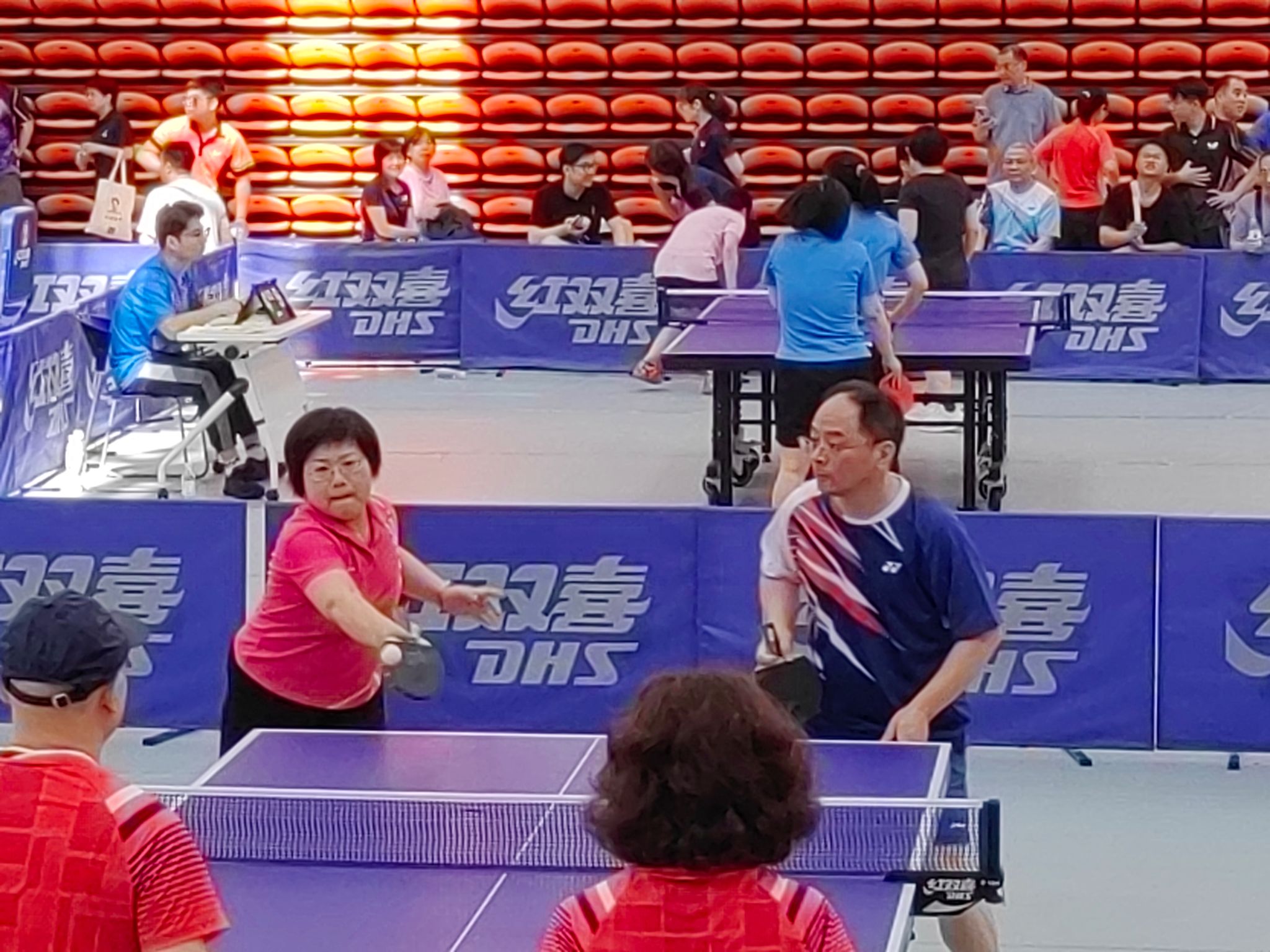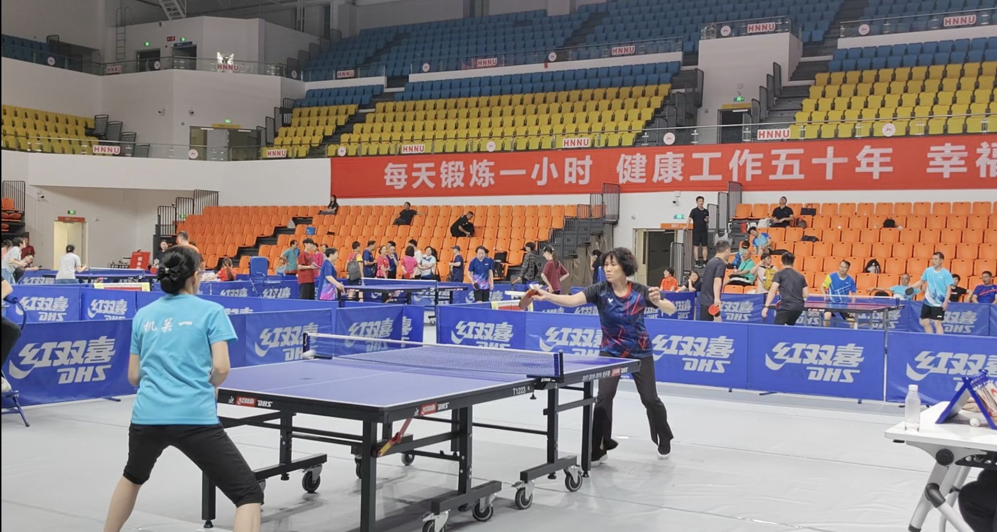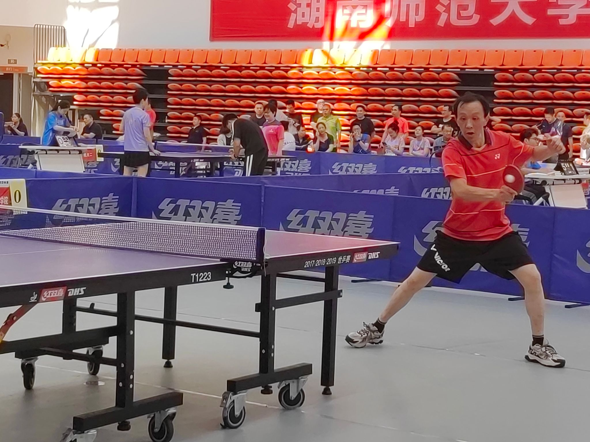(供稿 院工会)6月20日至21日,湖南师范大学2024年度教职工乒乓球团体赛在校江湾体育馆举行。我院党委书记李正益到现场为参赛教职工加油鼓劲,专职组织员曾南雁以队员身份参加了此次乒乓球团体赛。