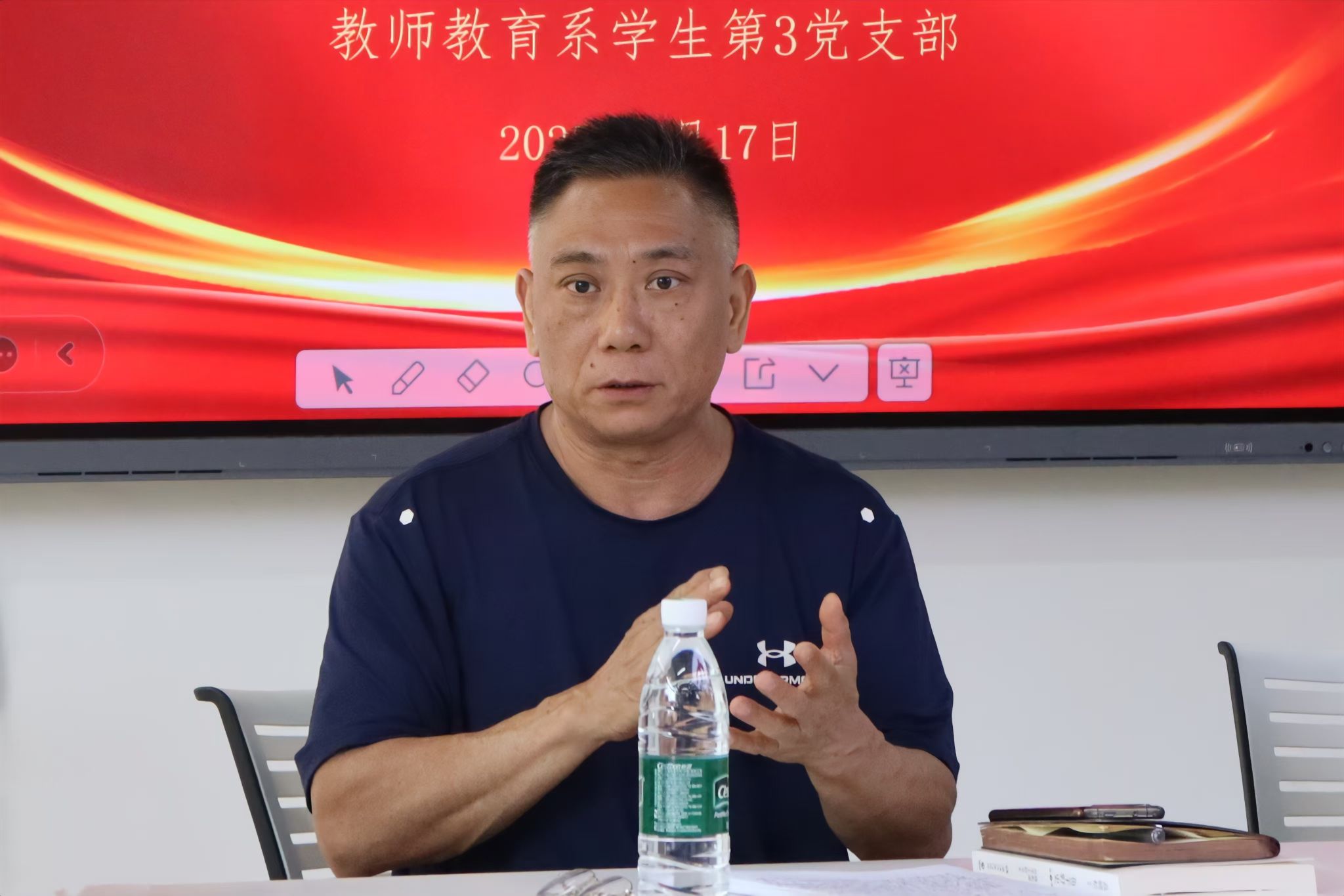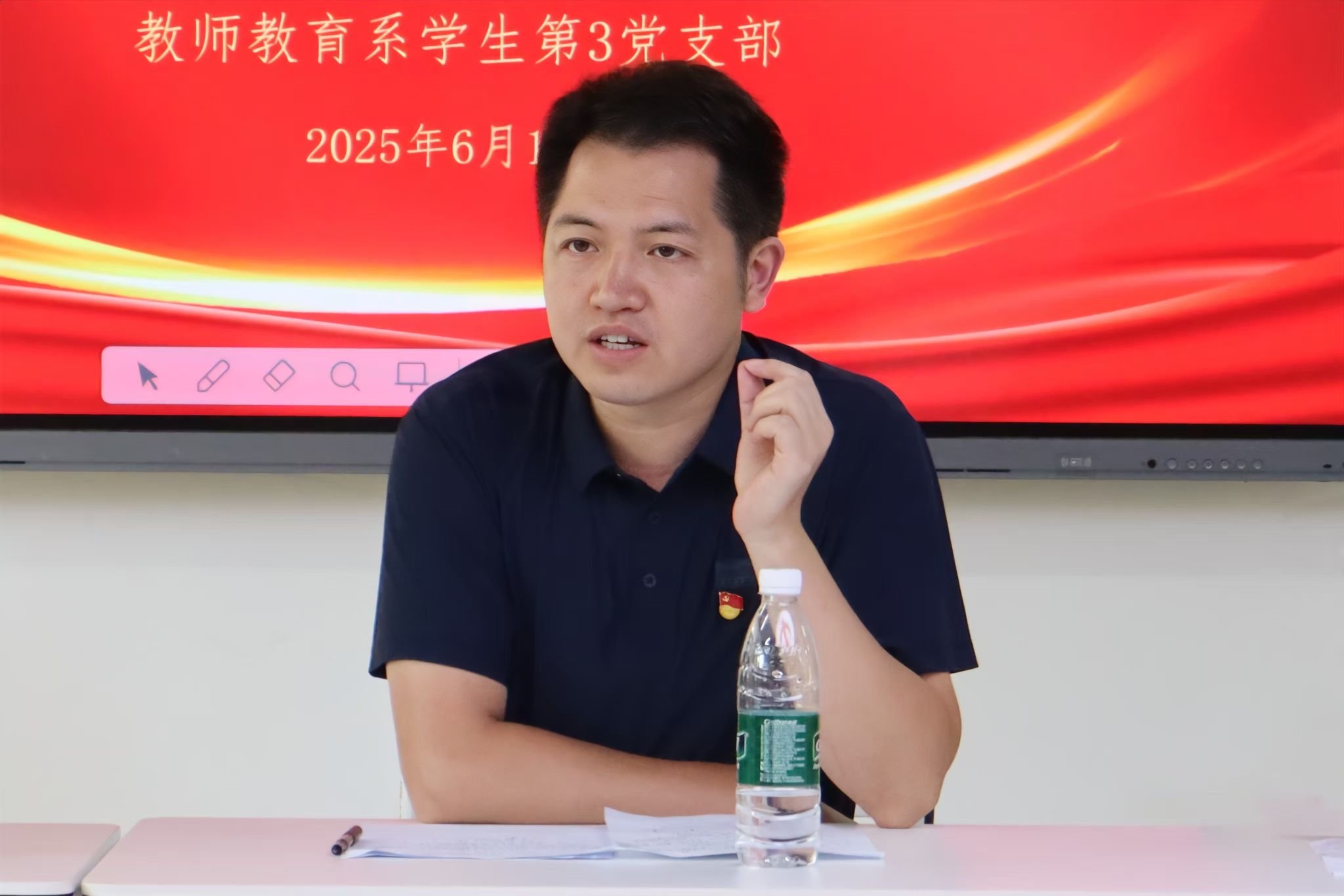 (记者 舒欢)6月17日下午,我院教师教育系学生第三党支部在党员之家开展2025年党员基本培训第一课研讨会。校离退休工作处副处长方俊雄、我院副院长欧阳锡禹出席研讨会。研讨会由教师教育系学生第三党支部书记孙一心主持。
