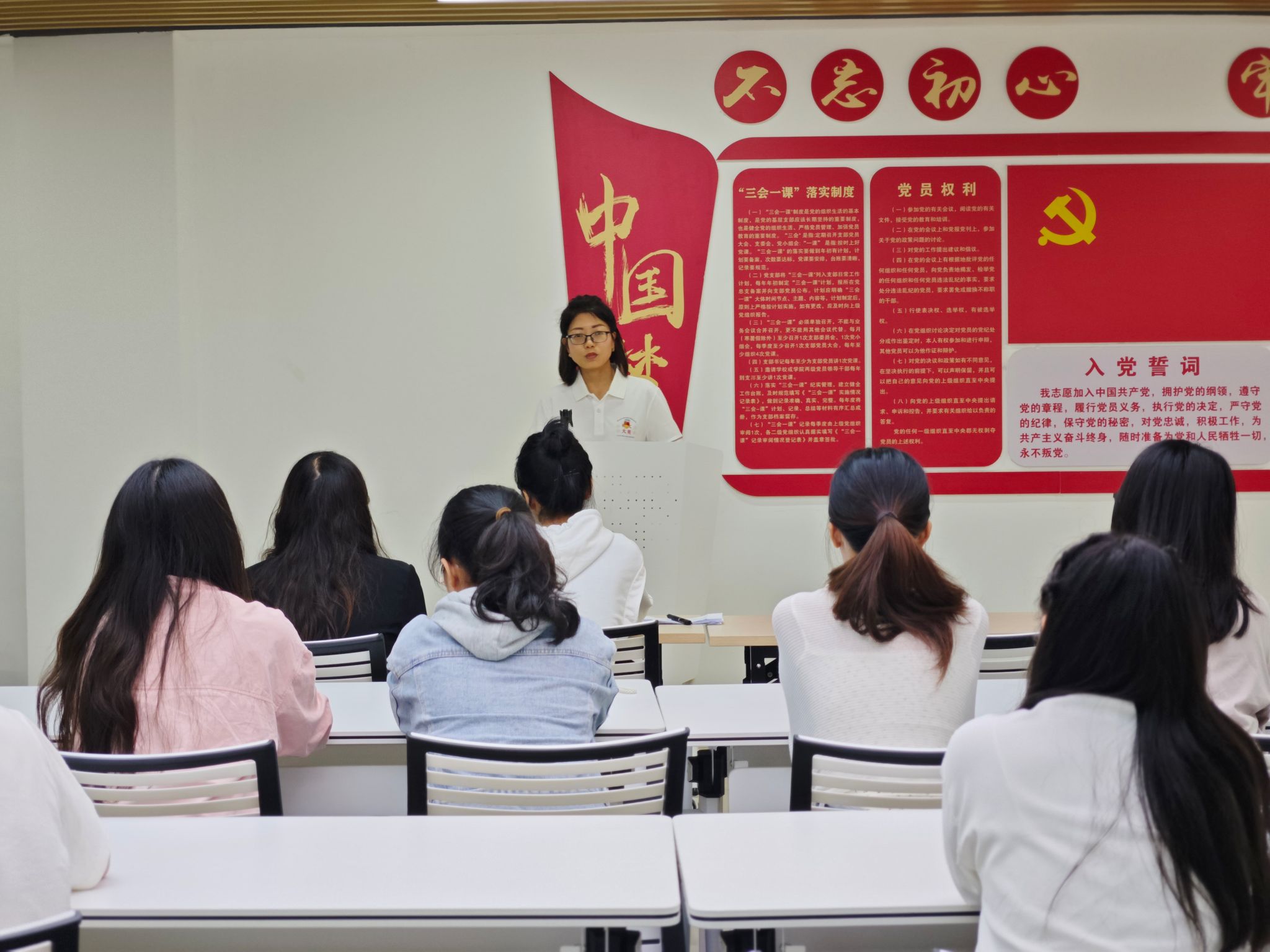 教师教育系学生第一党支部宣传委员王璐代表支部委员会报告预备党员在预备期间的教育考察情况。