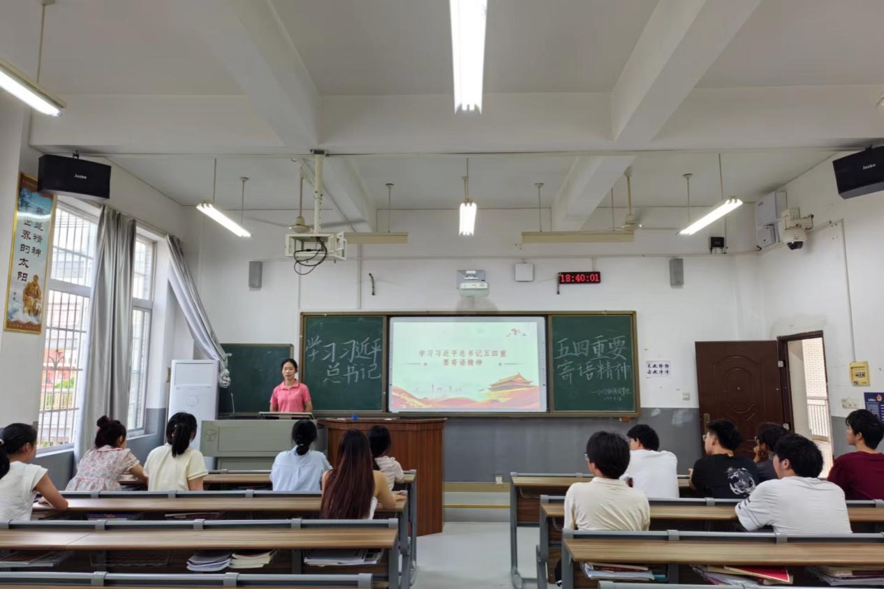(记者 王洁 刘艺杰)5月16日下午,我院经管系2022级酒店管理专业在树达楼405教室开展以“学习习近平总书记五四重要讲话精神”为主题的专题教育学习活动。活动由团支部书记廖亮主持。