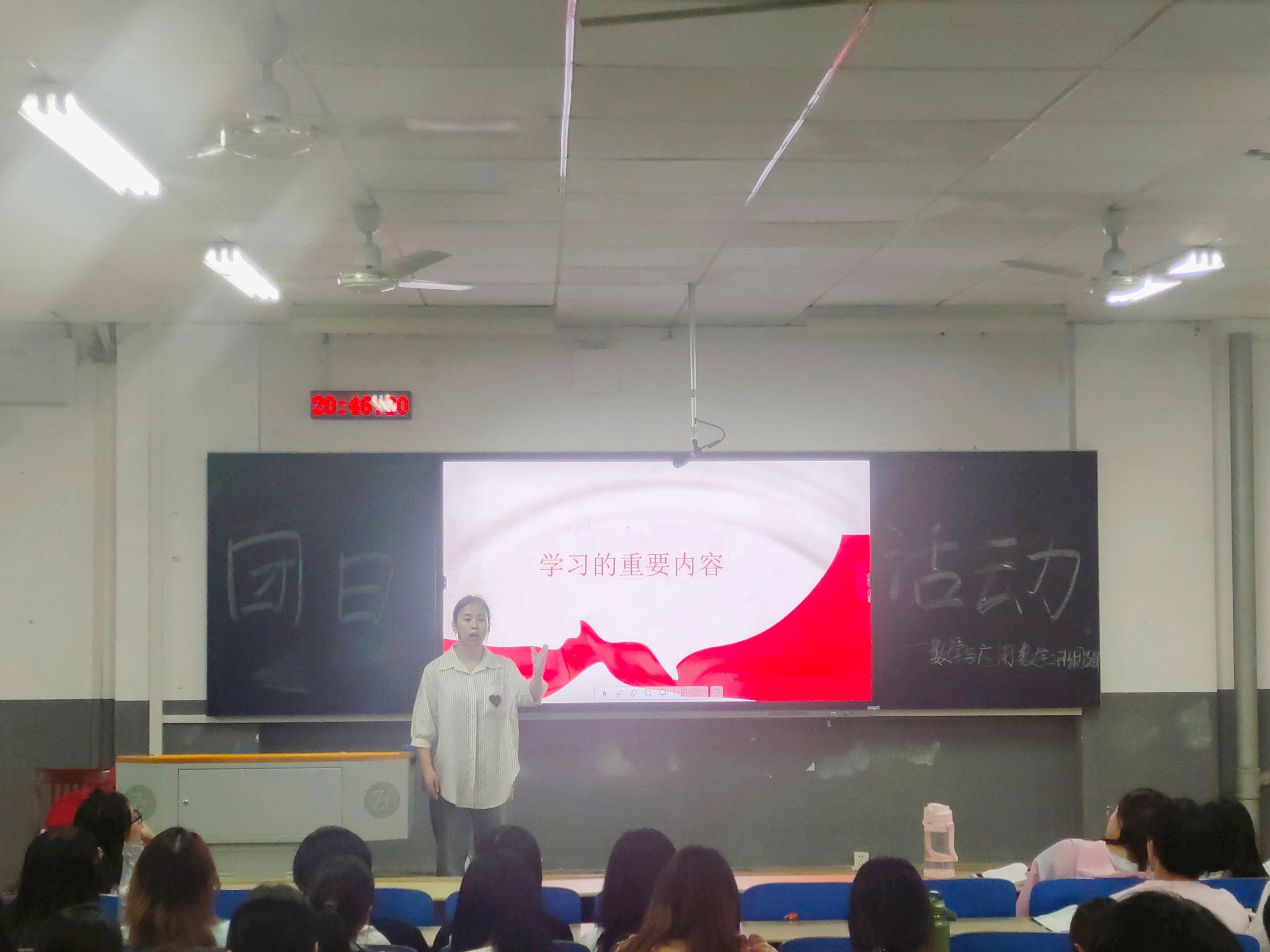 张宇新作活动总结。她表示,作为新时代青年,同学们肩负着时代重任,承载着民族梦想。她希望,在面对时代的挑战和机遇时,各团员能勇于创新,敢于担当,勇于探索未知,在各自的领域里追求卓越,成为时代的引领者。