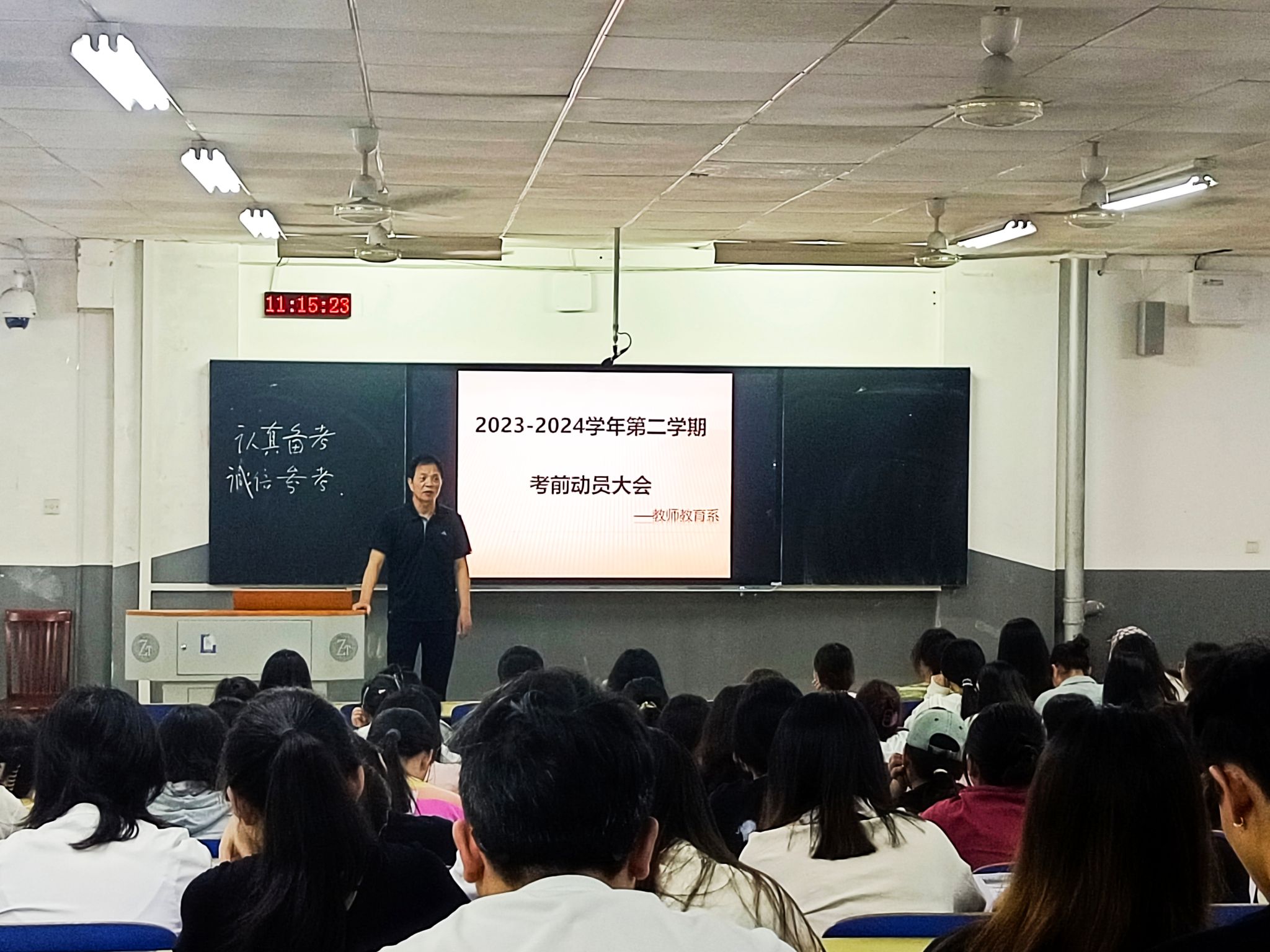 (记者 胡超凡 邓瑞凌)6月17日,我院教师教育系2021级、2022级部分班级于树达楼115教室召开考前动员大会。教师教育系系主任刘顺保出席会议。