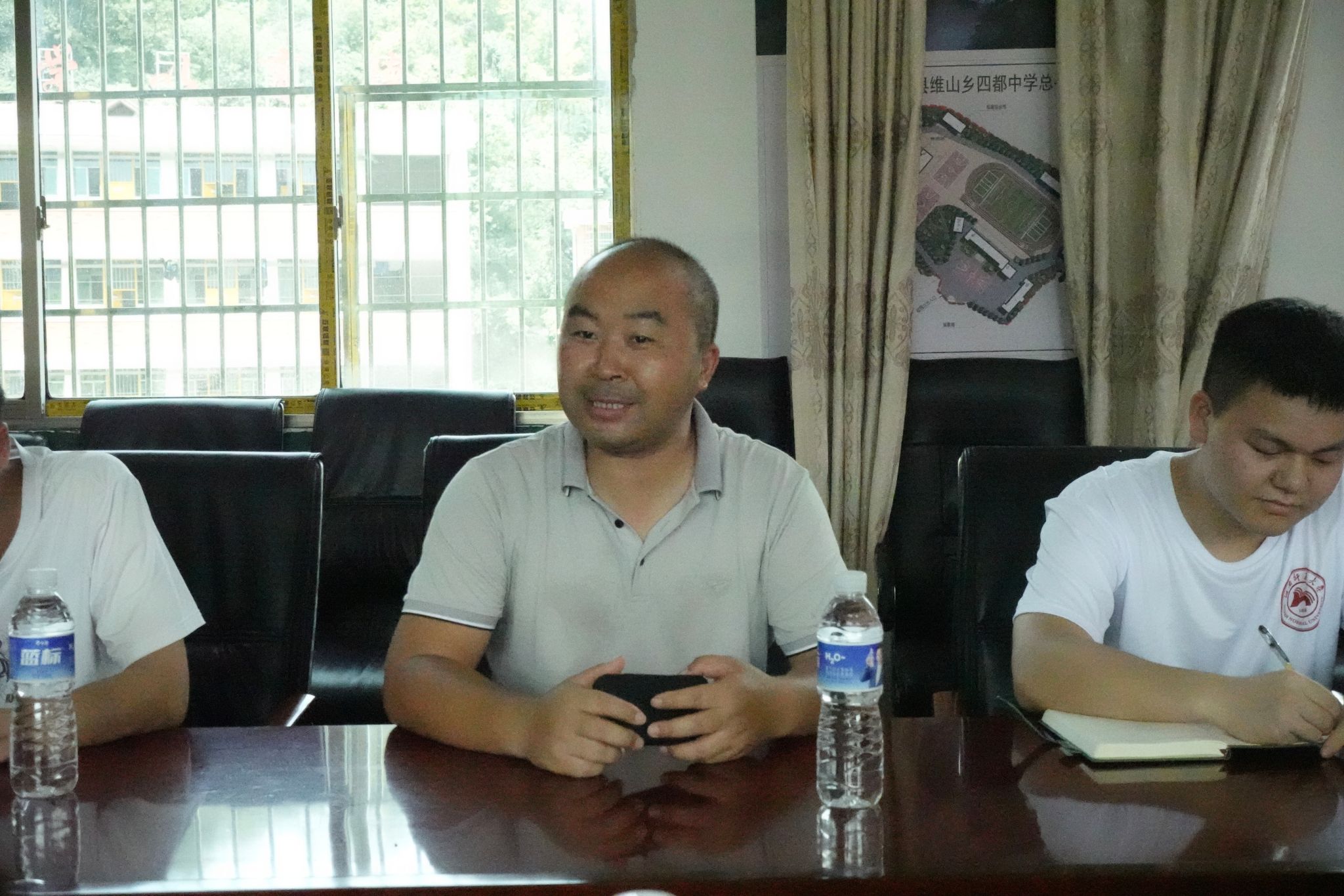 (记者 邹韵霖 蒋婷婷 刘艺杰)7月5日下午,我院经管系、理工系三下乡“青树行”暑期社会实践团在维山乡四都中学召开见面座谈会。四都中学校长吴红峰、专职副书记聂啸、总务主任曹跃云、政教主任刘跃霞、实践团指导老师王贞出席此次会议。