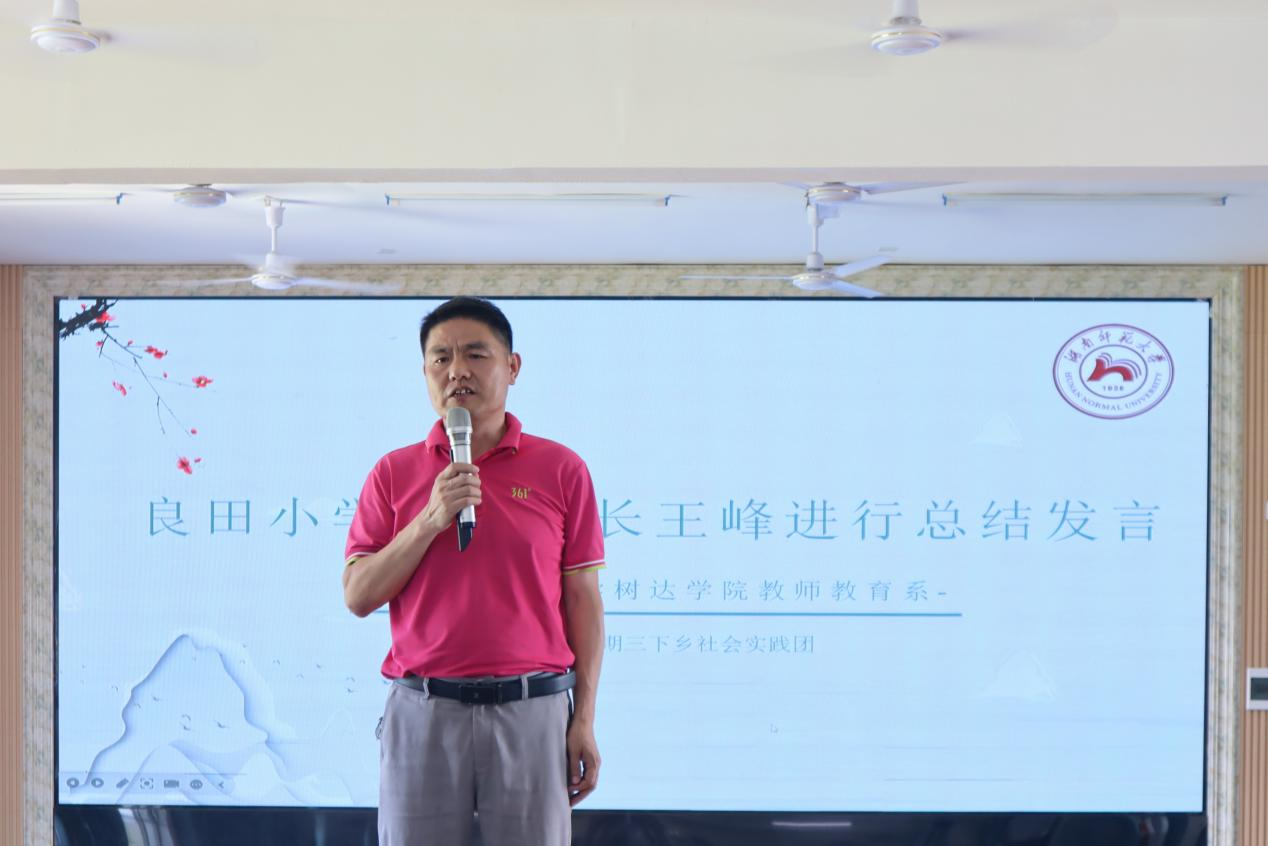 王峰作总结发言。他对良田学子积极的精神面貌表示肯定,并向“星火筑梦”三下乡团队队员表达感谢,希望通过音乐、美术、舞蹈等兴趣课程让孩子们在快乐中收获成长。