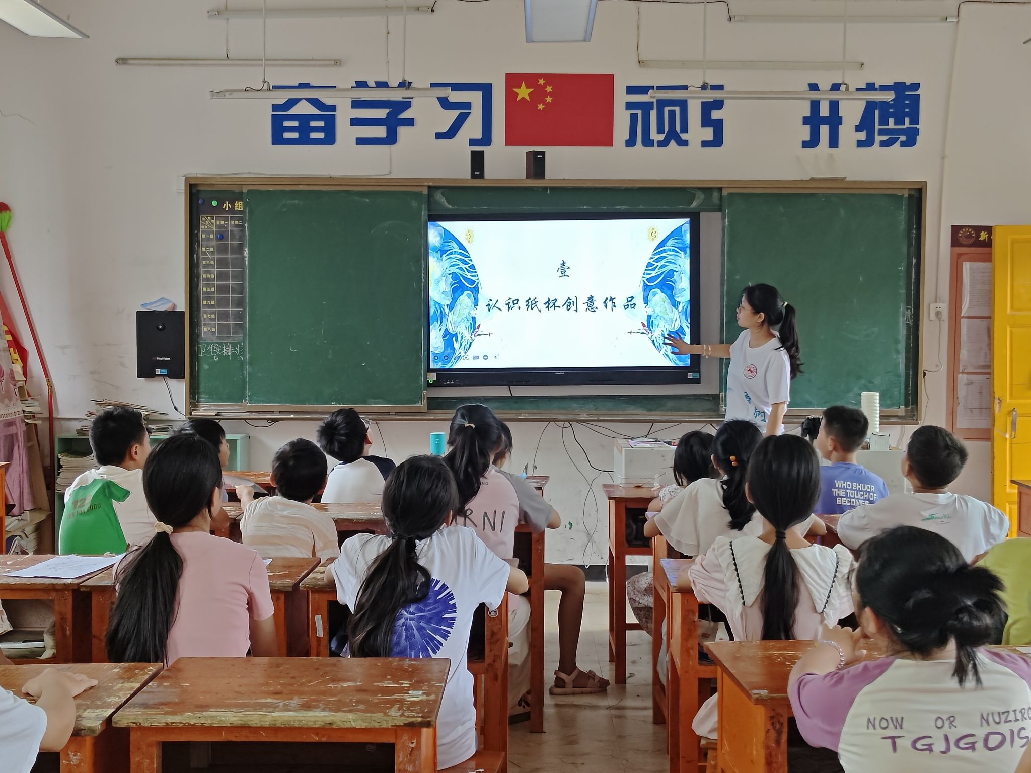 (记者 邹韵霖 蒋婷婷 刘艺杰)7月10日上午,我院经管系、理工系三下乡“青树行”暑期社会实践团在四都中学开设“变废为宝”趣味课程。调研组组员李伊佳担任主讲人。