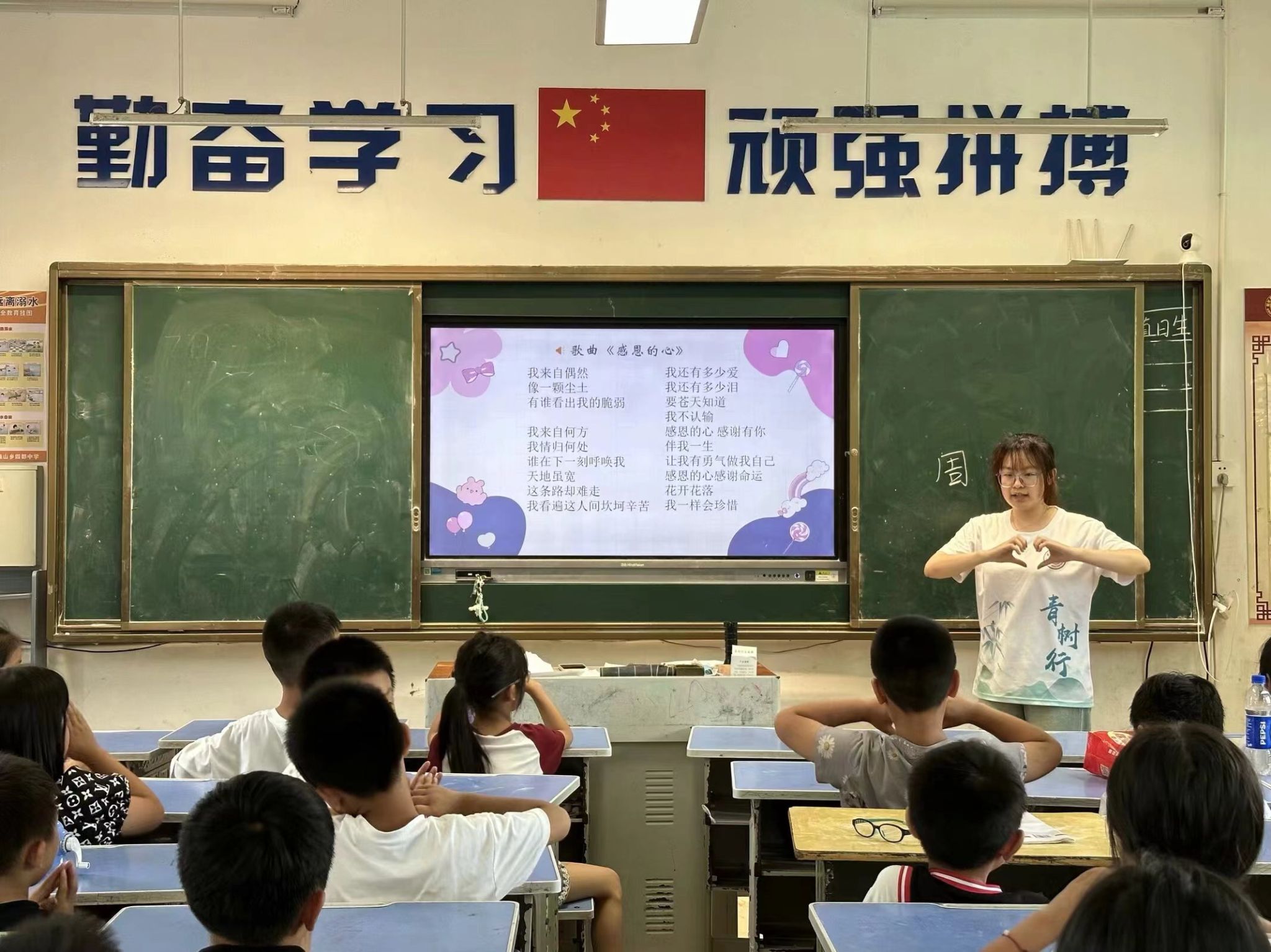 (记者 邹韵霖 伍扬 刘艺杰)7月12日上午,我院经管系、理工系三下乡“青树行”暑期社会实践团在四都中学开设手势舞特色课程。调研组组员周文静担任主讲人。