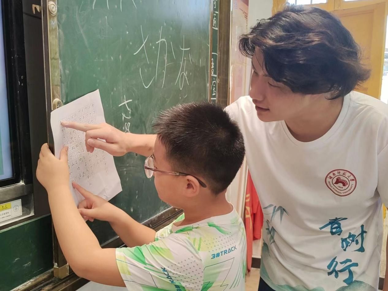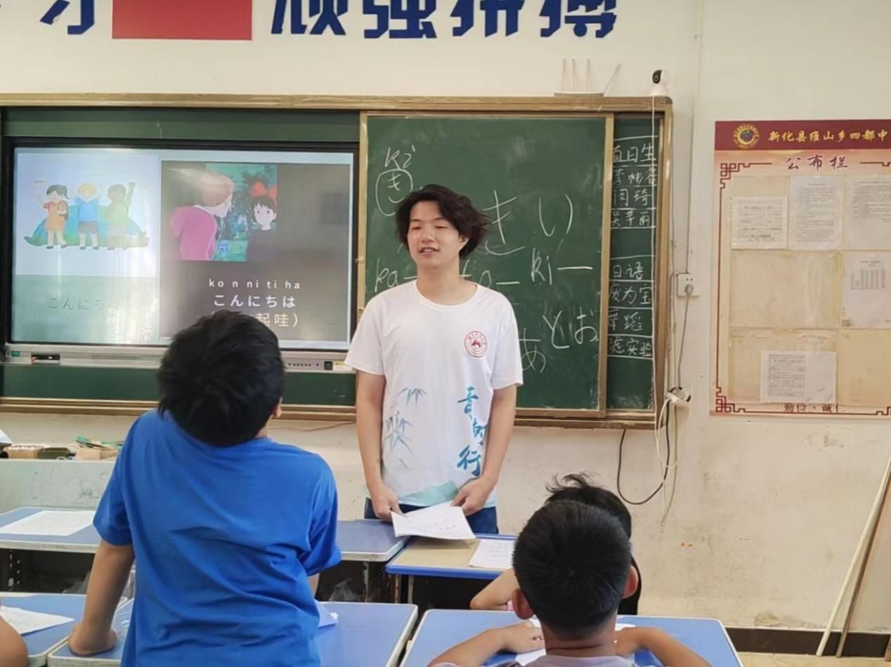 (记者 邹韵霖 蒋婷婷 刘艺杰)7月15日上午,我院经管系、理工系三下乡“青树行”暑期社会实践团在四都中学开设日语特色课程。“青树行”代表队文娱组组员王俊峰担任主讲人。