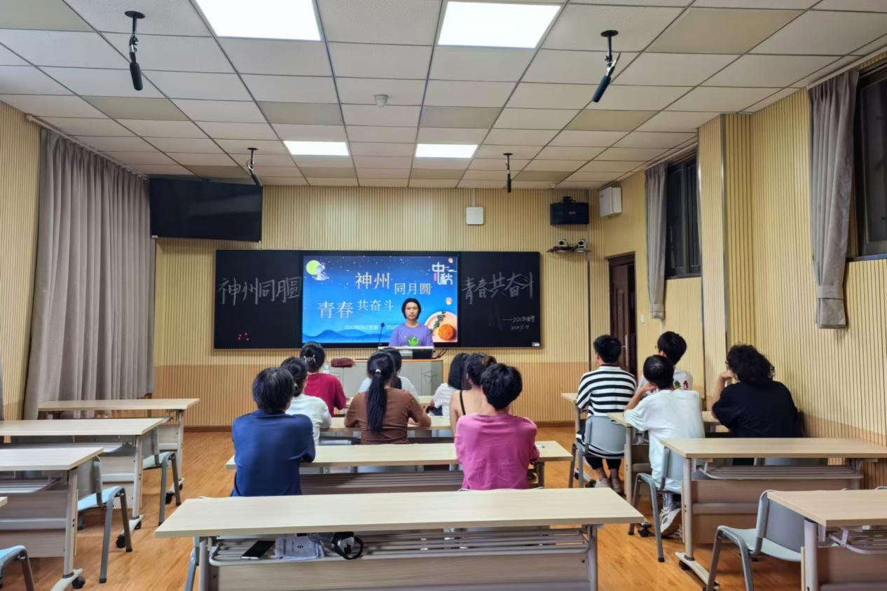 陈子轩向同学们讲述中秋节的来源、传说与传统习俗,并组织同学们观看中国探月工程成就总结视频以及中秋节知识竞答。她表示,同学们应将“赏月”和“探月”联系在一起,既要传承、发扬中华优秀传统节日文化,更要积极展现“探月精神”,用实际行动去为国家发展与民族复兴贡献一份力量。