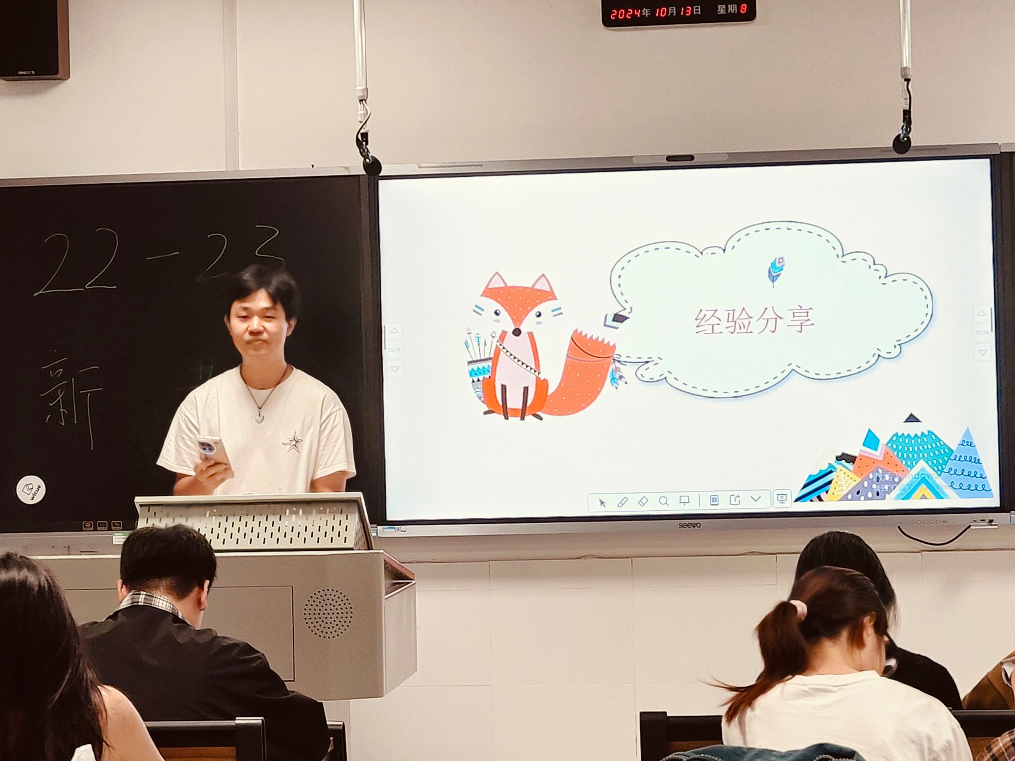 2022级地理科学专业团支部书记余嘉程和学习委员罗刘斌星分别分享了学习、生活方面的经验。他们表示,大学生活丰富多彩,同学们在学习之余也要积极参与各类活动,充实生活,提高自身修养和个人能力。