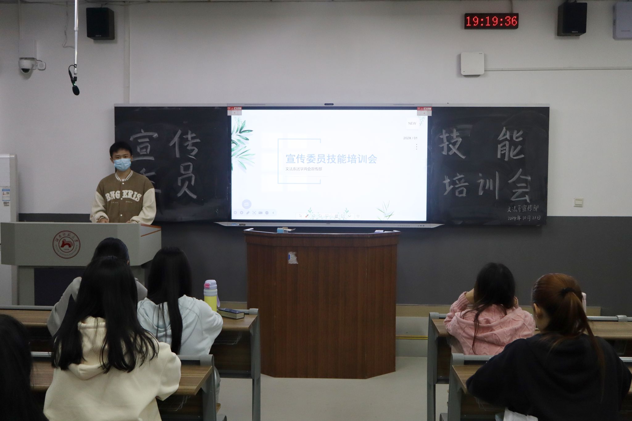 (通讯员 夏楷 刘婉婷 康世强)10月21日晚上,我院文法系在树达楼505教室召开了文法系宣传委员技能培训会。会议由文法系团总支宣传部副部长康世强主持。