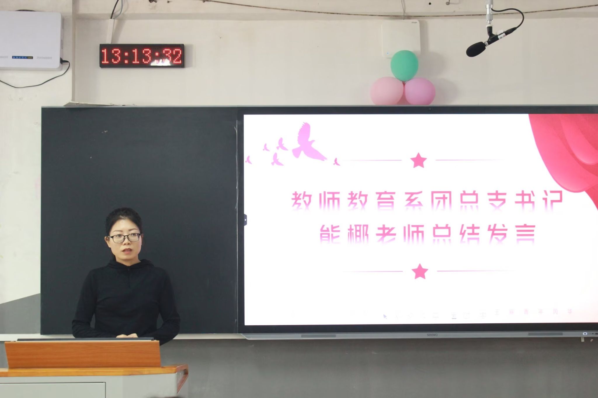 教师教育系团总支书记熊椰作活动总结。她表示,四位主讲人通过结合工作和学习的经历,讲述了思想成熟的历程。她希望,同学们能以积极的姿态去激扬青春,做一名有理想、有担当,能吃苦、敢奋斗的新时代青年。