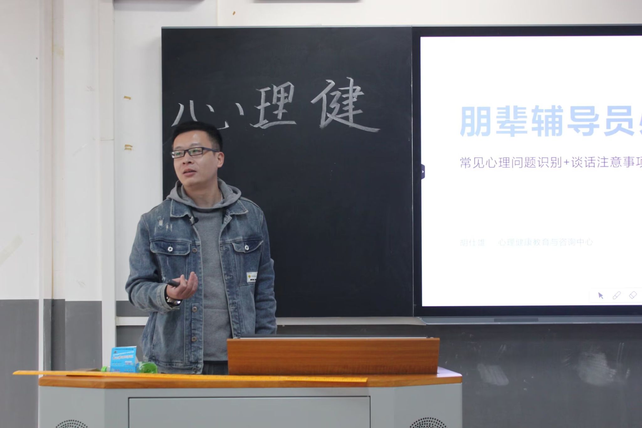 (通讯员 许海微 胡超凡 洪鹏志)11月21日中午,我院第十四期先锋团校教师教育系分校在树达楼216教室开展以“心理健康教育”为主题的第二次岗位培训课程。心理健康教育与心理咨询中心主任胡仕雄担任课程主讲人。