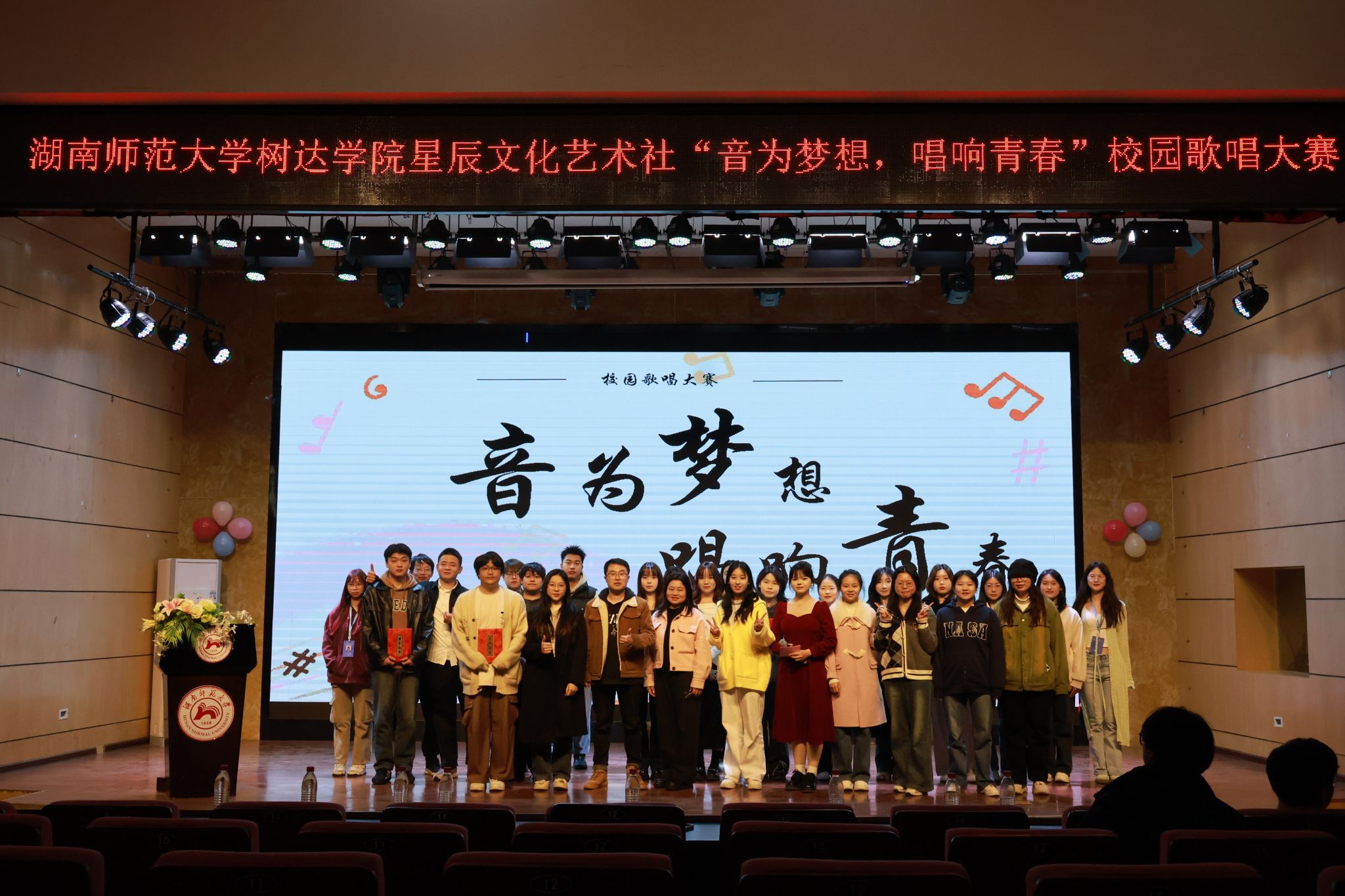 (通讯员 谢先璇 何慧萍 黄好琳)3月19日中午,我院星辰文化艺术社在树达楼113报告厅举办以“音为梦想,唱响青春”为主题的校园歌唱比赛决赛。我院教务办主任刘晗、团委副书记龙珊出席比赛。比赛由2022级播音与主持艺术专业马粤娟主持。