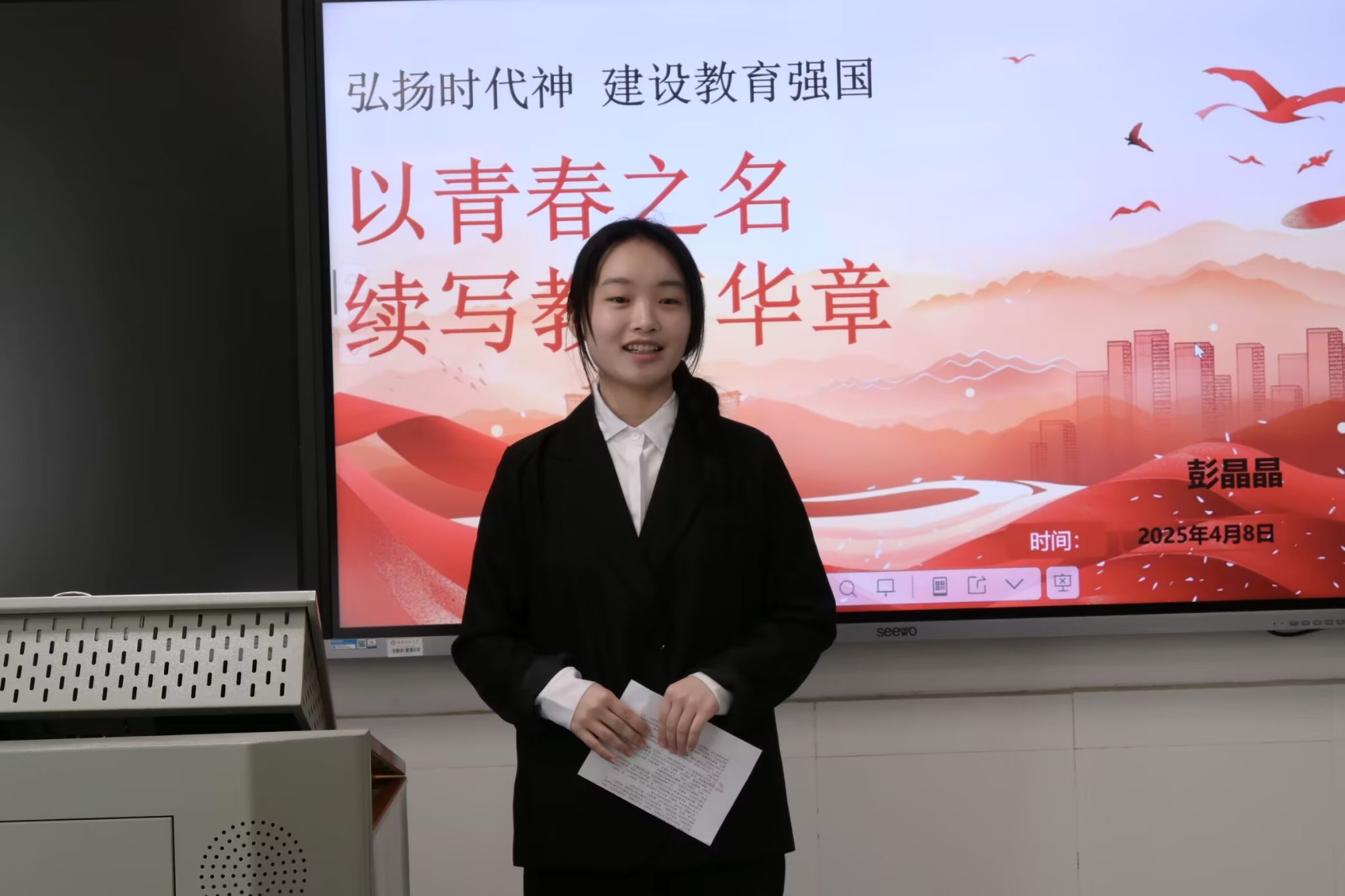 学生会主席团成员贺思宇作总结发言。她对八位参赛选手的精彩演讲及工作人员的付出表示充分肯定。她指出,百家小讲坛不仅是青年学子展示青春激情的平台,也体现着同学们对党和祖国赤诚的热爱,选手们在讲台上激情飞扬,正代表着911吃瓜每日大瓜在线看昂扬向上的斗志。她希望,无论获奖与否,各选手都能保持激情并努力在校园中发光发热,用实际行动践行教育强国的伟大目标,将积极的时代精神传递给身边的人。