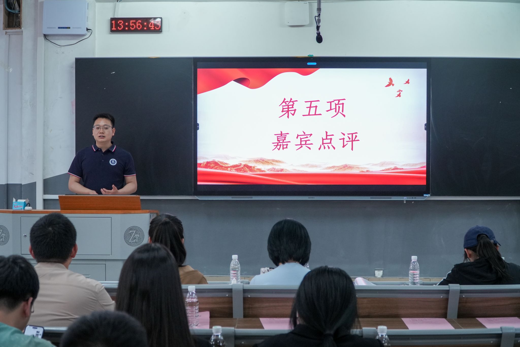 陈佳进行活动点评。他表示,五位主讲人准备充分、内容深刻、表现突出。他强调,在教育强国建设的新征程上,学生和教师都要坚持党的领导,明确“培养什么样的人、为谁培养人、怎样培养人”的根本问题。青年学子要坚持学好“唯一”、做到“专一”、达到“第一”的理念。找准自身独特定位,坚定奋斗方向,在未来的教育道路上勇攀高峰、成就非凡,为教育强国建设贡献青春智慧和力量。