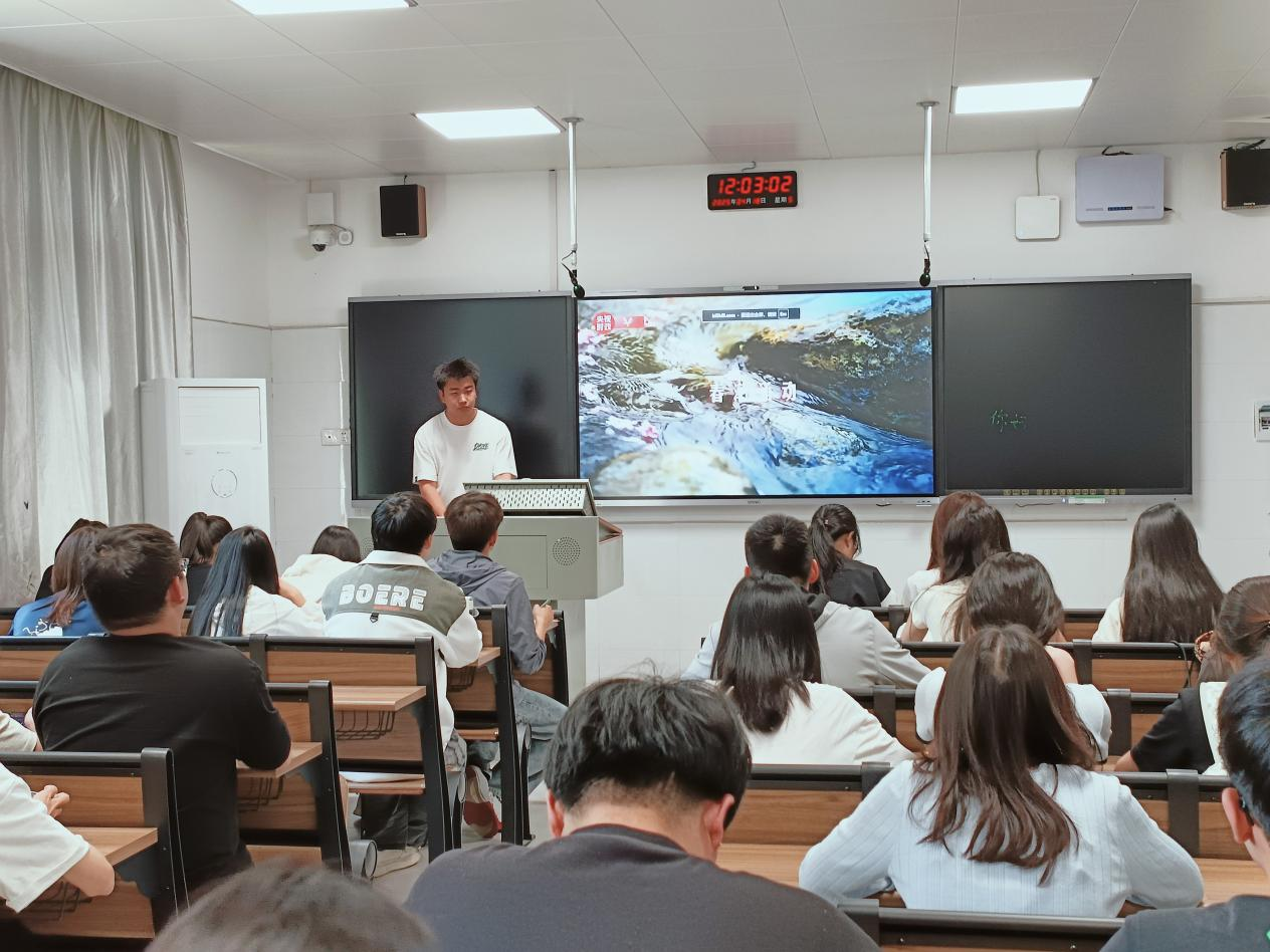 2023级数学与应用数学二班团支部书记游斌围绕“凝心聚力推进中国式现代化”主题进行宣讲。他结合历史资料与现实案例,从中国式现代化的丰富内涵、本质特征、重大意义等方面作了详细阐述,深入解读了中国式现代化在经济发展、科技创新、民生改善等领域的具体实践与伟大成就。