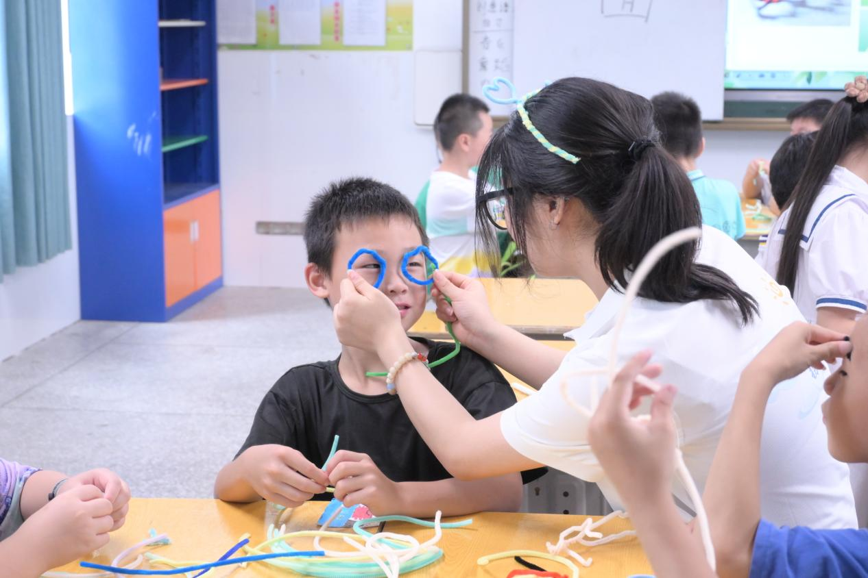 唐祖娴向学生们讲解帆布包绘画的基础技巧,带领学生们制作帆布包,提高了学生们的想象力;王姝妮为学生们讲解了扭扭棒的制作,并与学生们一同制作扭扭棒,锻炼了学生们的动手能力;孙妍为学生们讲解色彩搭配原则,增强了学生们对色彩的运用。
