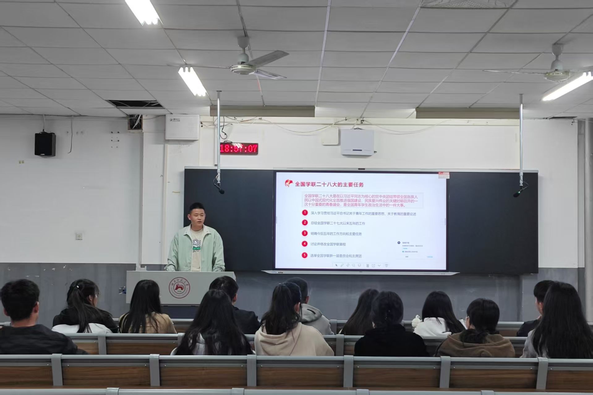 唐建东围绕全国学联二十八大精神,解读了大会的核心要义与实践要求,深入阐述了新时代青年在思想引领、责任担当、服务同学等方面的使命任务。他强调,作为学生骨干,要深刻把握大会精神实质,坚定理想信念,锤炼过硬本领,以务实作风和创新思维投身学生工作,在服务同学中成长成才。