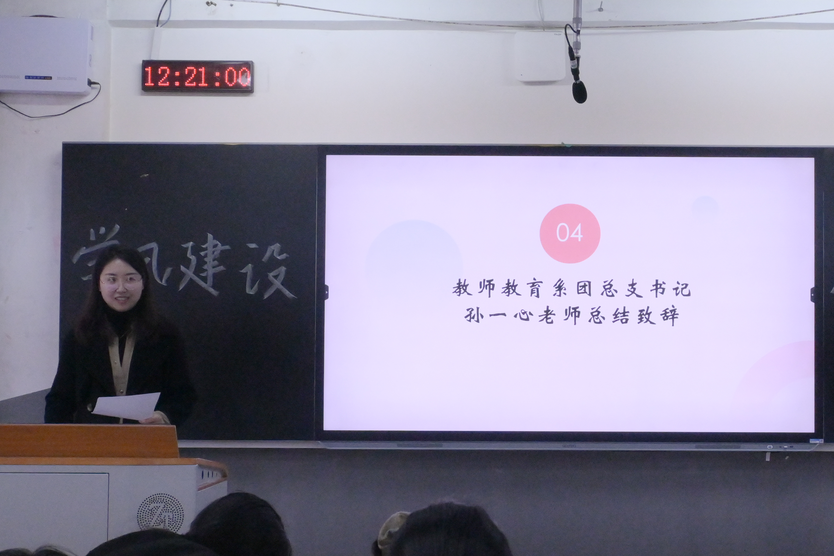 (通讯员 贺猛 唐祖娴 彭青禾)12月16日中午,我院教师教育系于树达楼115教室开展教师教育系学风建设总结大会。团总支书记孙一心出席会议。