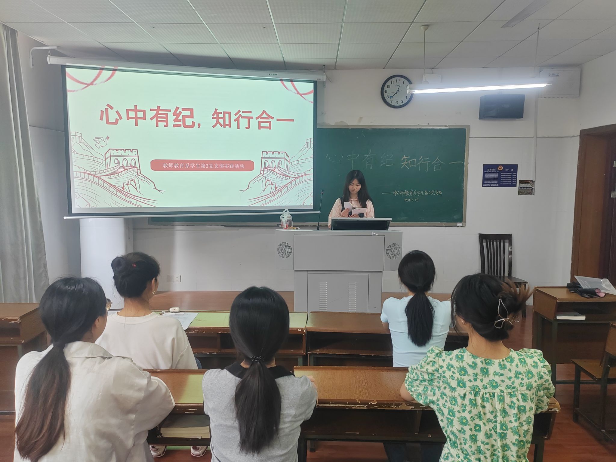 (记者 张寒湘 马炜浩)5月25日中午,我院教师教育系学生第二党支部在第一教学楼207教室开展以“心中有纪,知行合一”为主题的《中国共产党纪律处分条例》学习读书会。活动由教师教育系学生第二党支部成员吴永佳主持。