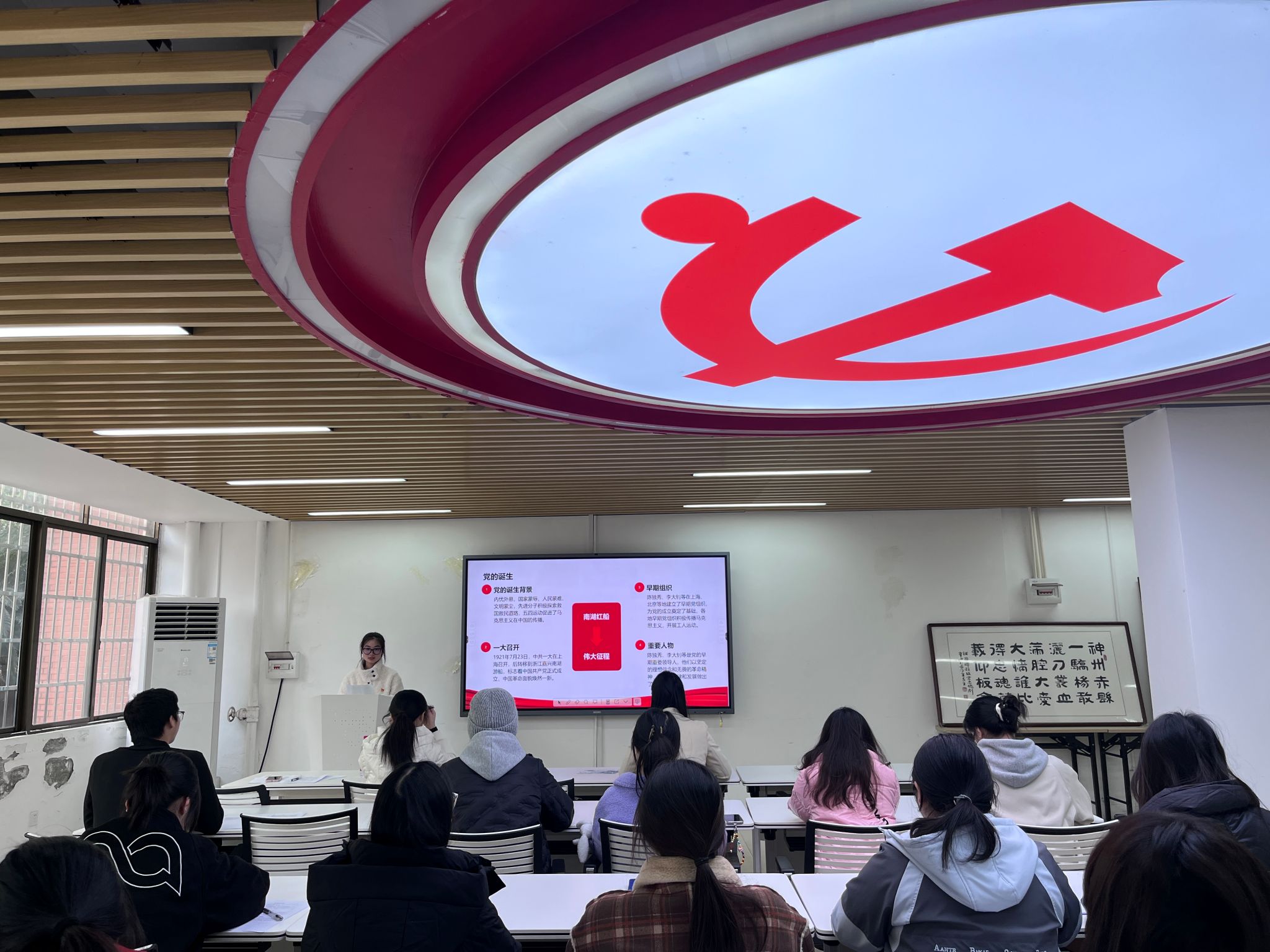 刘佳作总结发言。她强调,青年党员既是红色基因的传承者,更是新时代的奋斗者。要从党的光辉历史和老党员榜样事迹中汲取奋进力量,把崇高精神融入专业学习与实践服务,锤炼过硬本领、践行初心担当,以青春行动为民族复兴贡献力量。